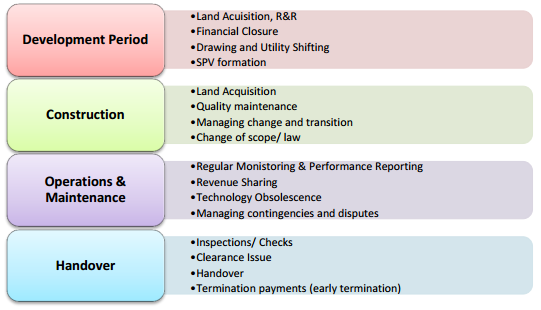 3. Operations & Maintenance Stage: this stage extends for the longest portion of the PPP project development lifecycle. It covers the provision of service by the private partner and the use of such services during the concession period.