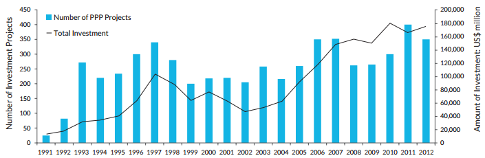 Figure 1. Global Trends for PPP Projects from 1991 to 2012
