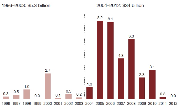 The institutional setups for PSP, which tend to develop gradually in a "learn-as-you-go" approach, also vary. Australia has adopted a decentralized institutional model for SOE privatization, with line ministries managing the process; and a centralized model for PPPs with a national policy framework. Malaysia has created another variation: a centralized institutional setup for both SOE privatization and PPPs in a dedicated entity known by its Bahasa Malaysia acronym, UKAS, which is located in the prime minister's office. Although Turkey does not have a dedicated entity for PPP projects, they are all managed by the Ministry of Development. Turkey's privatization projects, however, are supported by a dedicated entity, which answers directly to the prime minister. In conjunction with strong support from the prime minister, the creation of this entity, which includes a high council composed of ministers and an administration, has accelerated Turkey's privatization efforts and revenues (see Exhibit 6).