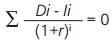This represents the return of the project regardless of the financing structure. The project's internal rate of return (r) is calculated from the following equation: