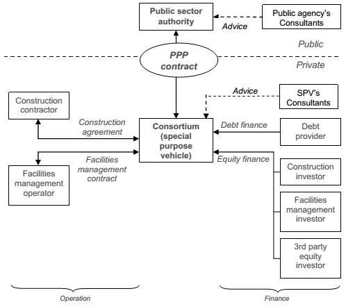 Figure 1.2 Typical PPP (for DBFO model) project structure