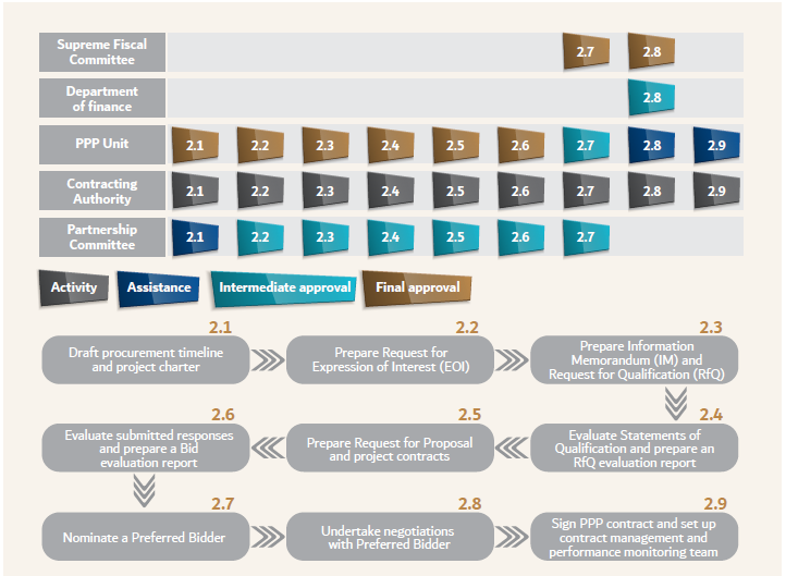 As outlined in the PPP Law, there are a number of key Stakeholders who will be responsible for performing tasks, accountable for review and approvals, consulted for input on a frequent basis, and informed about project progress on an intermittent basis: