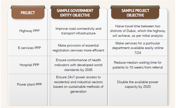 Figure 8: Illustrative list of Government Entity and project objectives for different types of projects |