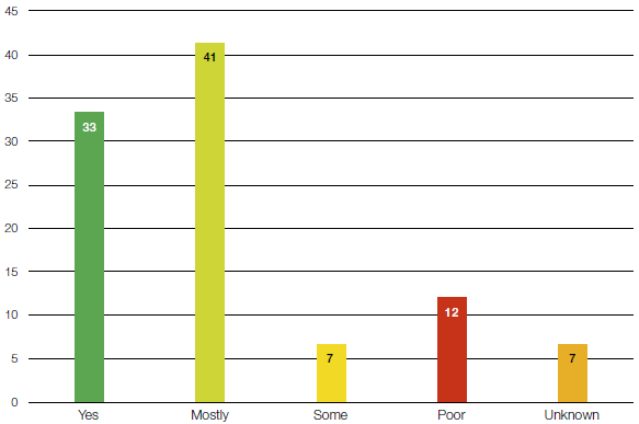| Figure 11 Percentage breakdown of survey respondents' views on whether private finance initiative (PFI) contracts clearly define the roles and responsibilities at expiry Only one-third of respondents stated that the roles and obligations of different parties at expiry are clearly defined Percentage