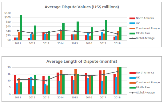 | REGION | AVERAGE DISPUTE VALUE | AVERAGE LENGTH OF DISPUTE | ||||||||