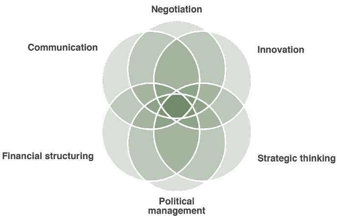 Key skills, then, are the tools in your toolkit. Where the frameworks can help you to understand issues that stand in the way of successful PPPs, the skills can be used to resolve those issues. These skills can be used to overcome obstacles, increase capacity, or improve efficiency. We will use six key skills over the course of this Guide: