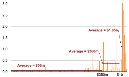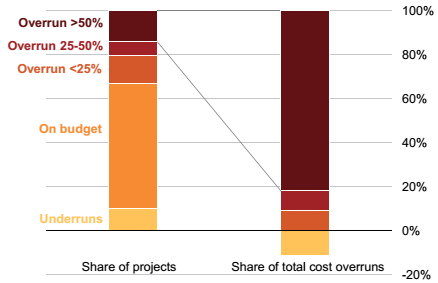 Figure 2.2: Large cost overruns are infrequent, but expensive
