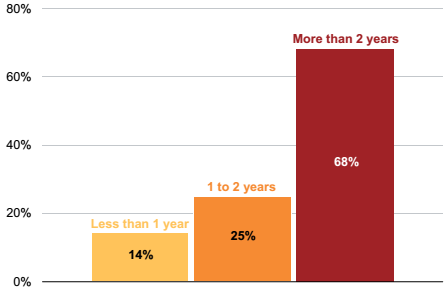 Average change in cost as a percentage of initial project costs, by length of time between first cost announcement and commencement of construction