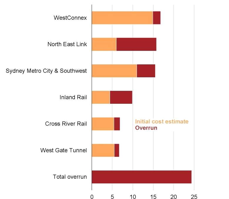 Figure 4.2: Just six mega megaprojects have caused $24 billion in cost overruns so far