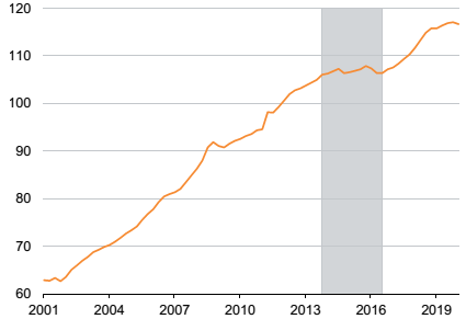 Source: Index Number 3101 from Table 17 of ABS (2020c).