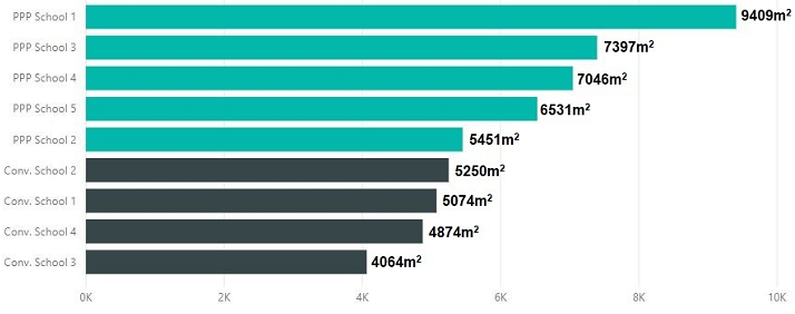 1.14 The total Gross Internal Floor Area (GIFA) of the Conventional Schools is smaller than that of the Pilot PPP Schools (Figure 1.2). All financial comparisons are drawn on a Euro per metre square basis.
