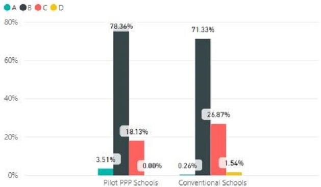 2.13 The Conventional Schools have a significantly higher proportion of assets assessed as condition C and D. This indicates a generally poorer condition and the need for greater spend on asset maintenance and replacement. For the Pilot PPP Schools Bundle, the percentage of poor condition assets would be expected to be low given the maintenance contracts and Lifecycle funding in place.