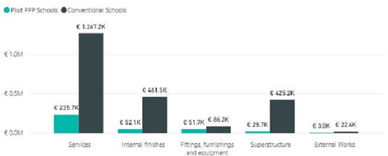 2.29 As shown in Figure 2.11, Backlog Maintenance at the Conventional Schools is significantly higher than at the Pilot PPP Schools. This is indicative of maintenance and/or Lifecycle replacement works not being undertaken as and when required, as evidenced during the condition surveys.