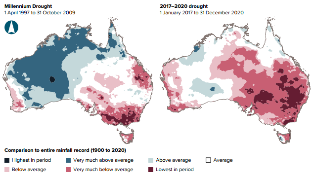 Figure III.1: Australia was drier in 2017-2020 than during the Millennium Drought