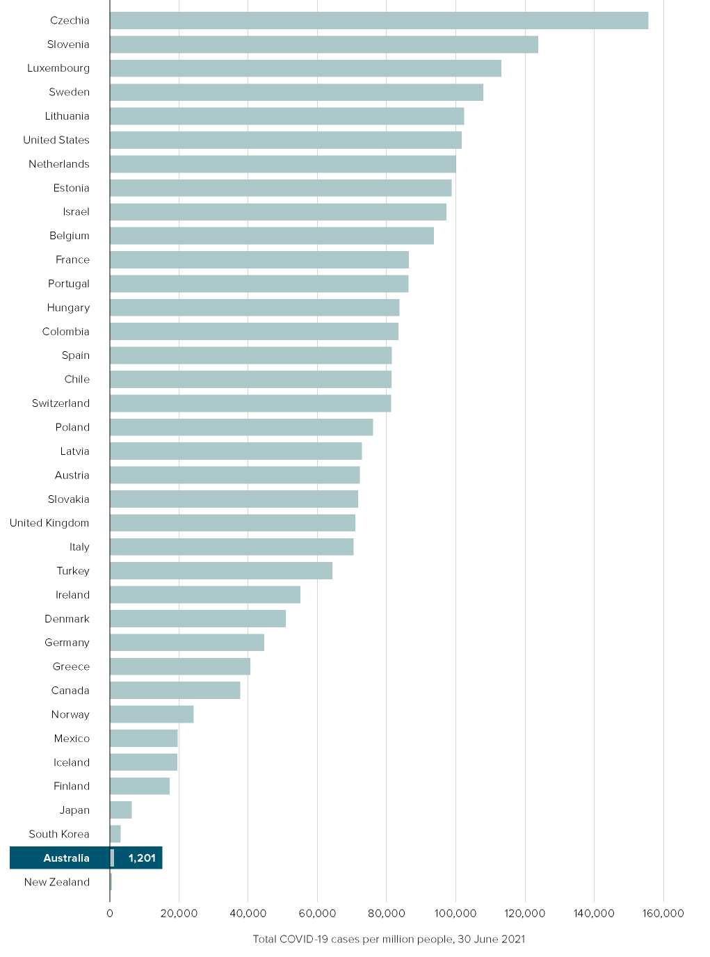 Figure III.3: Australia has had relatively low case numbers compared to other OECD countries