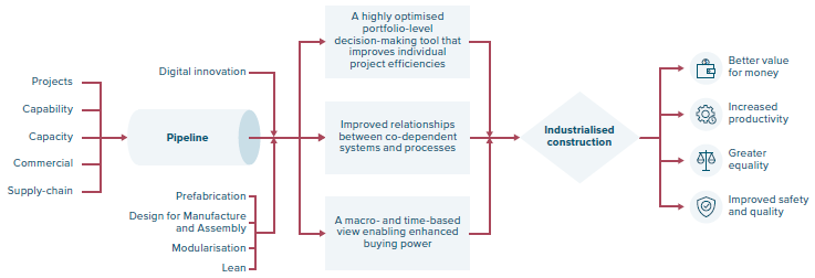 Through industrialisation, projects move from being regarded individually to being considered together as a 'system'. Governments can capture benefits from innovative concepts and approaches in planning, design, and delivery.