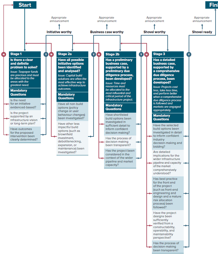 To avoid poor performance, infrastructure projects should be assessed as investment-worthy before they are considered shovel-ready, as measured against a long-term view of the desired investment outcomes.
