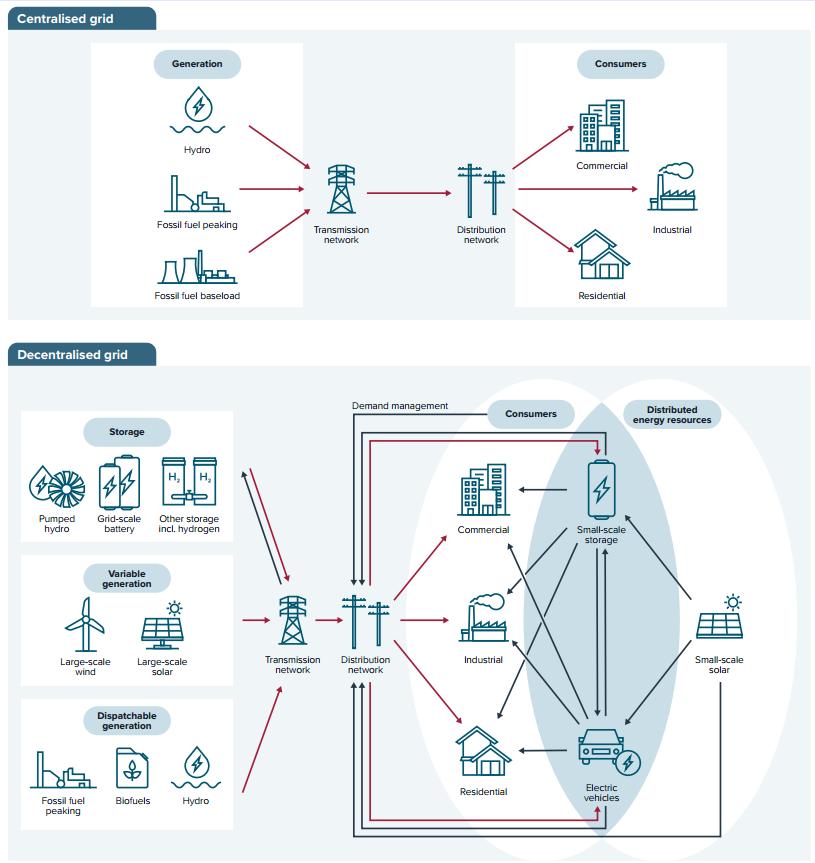 Figure 5.1: The electricity system is changing from centralised to decentralised