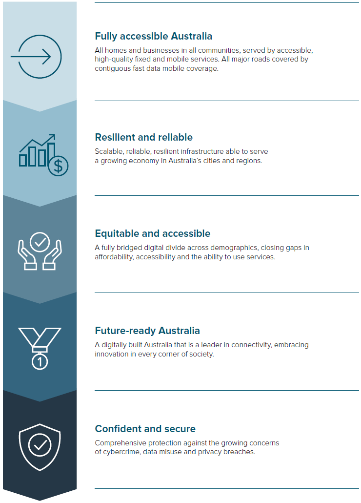For some communities, 2020 marked a clear increase in digital adoption. For others, it highlighted a deep digital divide. The recommendations of the 2021 Australian Infrastructure Plan will bridge this gap over the next 15 years. The 2021 Plan's intended goals are simple and bold: To enable every Australian to reach their full digital potential (see Figure 7.1).