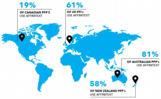 PPP /PFI Customers - by value | Affinitext has been adopted on: ❖ 81% of PPPs in Australia ❖ 61% of PPPs / PFIs in UK ❖ 19% of PPPs in Canada ❖ 58% of PPPs in New Zealand |