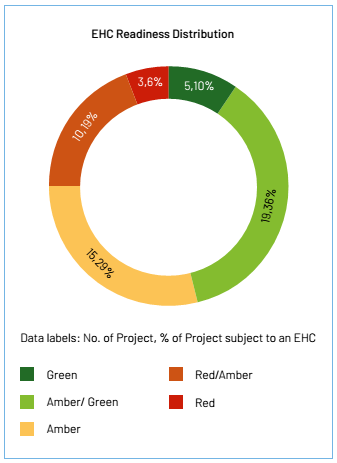 The results also show that 19 of 21 projects expiring before the end of 2024 were assessed as Amber to Red, which indicates that there is an immediate need for action on these projects to minimise the loss of value and disruption to public services. The IPA's CoE is working with departments to improve these contracts' readiness for expiry. There are a number of factors causing the projects closer to expiry to be redder, however, a general theme is that these projects would have benefits from earlier expiry preparation. The EHC process will help kick-start expiry preparation for all projects 7 years before expiry.
