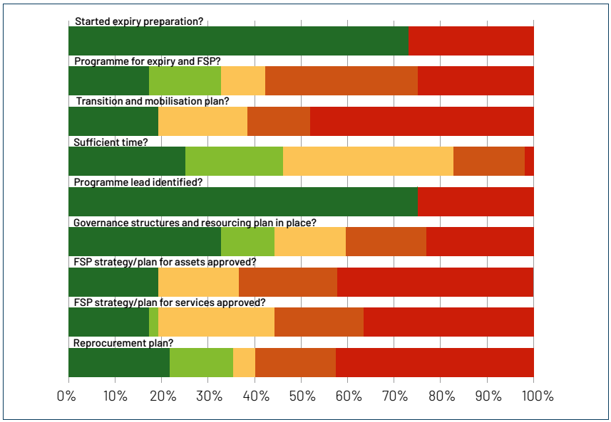 The data says: | • c.25% projects have not started to prepared for expiry • Only c.40% have a robust programme for expiry and future service provision • c.25% of projects have no identified project lead for expiry • c.55% have inadequate governance and resourcing plans for expiry • c.80% of projects don't have robust and approved plans for expiry |