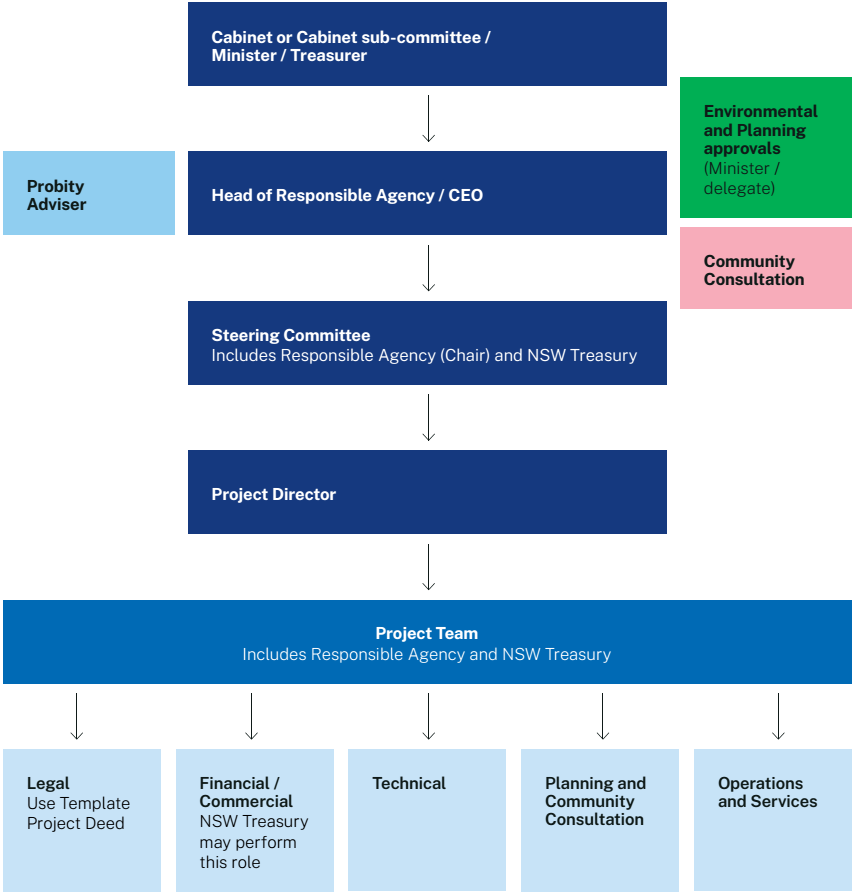 A typical high-level project management structure for NSW PPP projects is provided below.