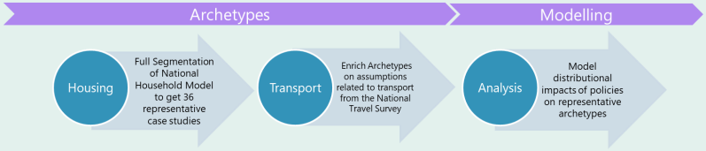 Focus Box: Net Zero Distributional Analysis Our model estimates the distribution of costs to households under different low-carbon heat and transport policies required to deliver net zero. We consider annual bills and capital expenditure until 2050 and test multiple variables which affect the costs and benefits from the transition: fossil fuel prices, heat pump cost and coefficient of performance (COP), electric vehicle prices and types, and simple variations in current policy design. Costs and benefits are presented in 2021 prices, taking into account inflation but not applying the Green Book discount rate which decreases the measured value of costs and benefits which happen far in the future. For the fullest analysis of policy impacts, we chose household case study types which together add up to 99% of the UK housing stock. Fuel usage and heat demand of these archetypes were taken from the National Household Model and data on transport behaviours predominately from the National Travel Survey.