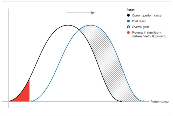 5. A "reset" is intended to deliver a significant shift in relative performance of the PFI Contract, moving the distribution curve to the right as set out below in Figure 2. There are some important points to note: